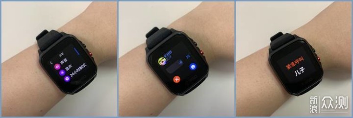 手表采用了双表冠设计,长按红色建可以开启SOS功能,会自动给联系人拨打电话、发送短信,并附带实时定位,可以快速救援老人。黑色键是功能按键,可以实现开机,亮屏,返回主界面操作。