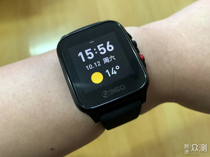 手表配备了一块1.4英寸高清大屏,采用IPS全视角技术,可视角度更广,显示效果细腻,辅以大图标、大字体,可以让老人看得更加清晰。遗憾的是手表并未配备抬腕亮屏,需要按键唤醒屏幕。屏幕下方印有360的LOGO。