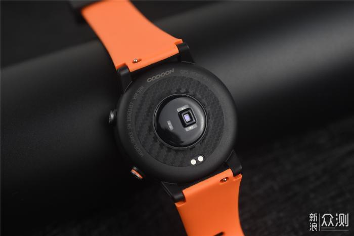 咕咚运动手表X3的表带采用硅胶材质,质地柔软舒适,表带内侧是橙色光滑面,外侧是黑色的条状设计,橙色加黑色这种撞色搭配,也让咕咚运动手表X3动感十足。另外,笔者强调下表带搭配的固定扣非常结实,绝对够耐用,而其表扣采用的也是316L不锈钢材质,并在表扣正面印上了咕咚的英文LOGO“coDoon”字样,非常具有辨识度。
