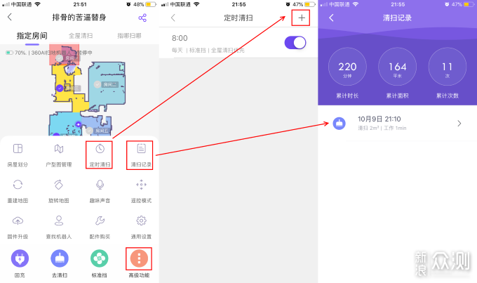 清扫记录功能:这个功能一般用不着,不过在机器人清扫出错卡机的时候,查一下清扫记录里的路线对查错有些帮忙。