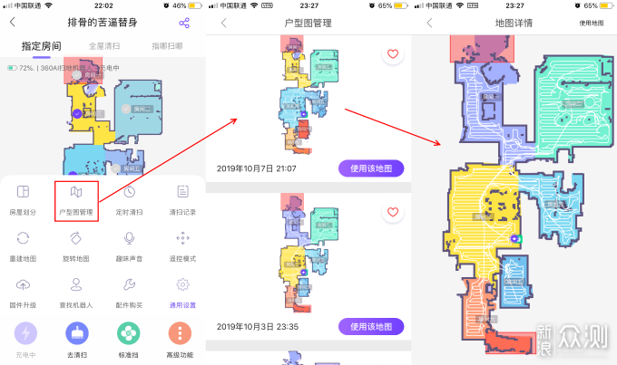 户型图管理功能:这个功能可以将T90扫描后保存在360云端的户型图下载到T90中。房子多的房东可以用一台T90打扫多套房子。(葛房东:T90不重,我一只手轻轻松松把它扛到楼下去!)