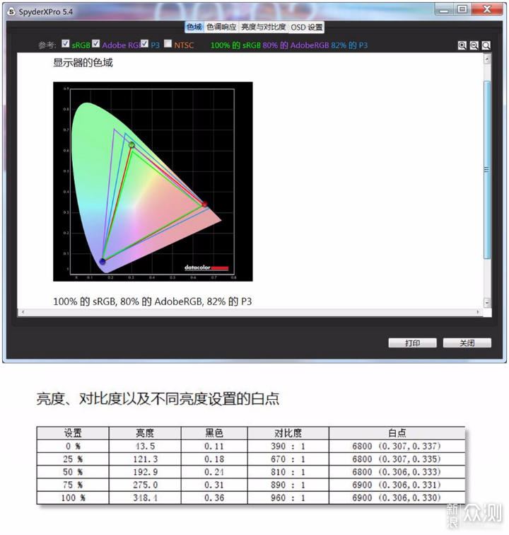 比如我对显示器进行色域和对比度的测试。我们经常看到很多显示器的宣传卖点是其“专业性”,色域达到了100%sRGB(sRGB是由Microsoft影像巨擘共同开发的一种彩色语言协议,微软联合爱普生、HP惠普等提供一种标准方法来定义色彩,让显示、打印和扫描等各种计算机外部设备与应用软件对于色彩有一个共通的语言),而现在越来越多的游戏本也宣称支持广色域(72%NTSC),而大多数笔记本屏只有45%NTSC左右的色域,折合大约60%sRGB,广色域的显示屏幕可以带来更出色的视觉体验效果,无论是看电影还是打游戏的时候,都可以带来更佳的视觉体验,俗话说就是多花钱多享受的效果。