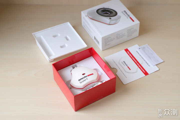 目前市场上对于显示器校色以及色彩分析的工具,最大名鼎鼎的应该就属红蜘蛛datacolor了,旗下还有蓝蜘蛛等对应不同功能细分的产品。我们知道,对于摄影爱好者、显示器测评工作室等等影像工作者来说,色彩管理是一件很复杂、很专业、也很有必要的事,就不用说从前期拍摄校色板、进软件选定色彩、以及后期屏幕色彩校正,就光是一个图片,显示器上看到的,和实际打印出来的,都很可能千差万别,这就需要一个统一的标准。时隔多年,蓝蜘蛛更新换代推出了Spyder X Pro校色仪,对比老型号来说,校正速度提高了数倍。新款的Spyder X Pro能够支持更多的分辨率、色域和屏幕面板技术,支持同时校准多个显示器,检测显示器色域,自定义校准参数等等,虽说我作为一个普通的摄影爱好者可能用不上太专业的校准的功能,但是作为数码爱好者来说,经常测评显示器的参数,这个蓝蜘蛛X就显得非常有性价比了。接着来谈谈这款宝贝的整体印象,就是外观更友好了,起码做工相比前代有了提升,白色的机身,红色腰线的造型,烤漆外观,也显得更加专业。另外,机身上可以接三脚架,适合更大的LED屏幕等设备。