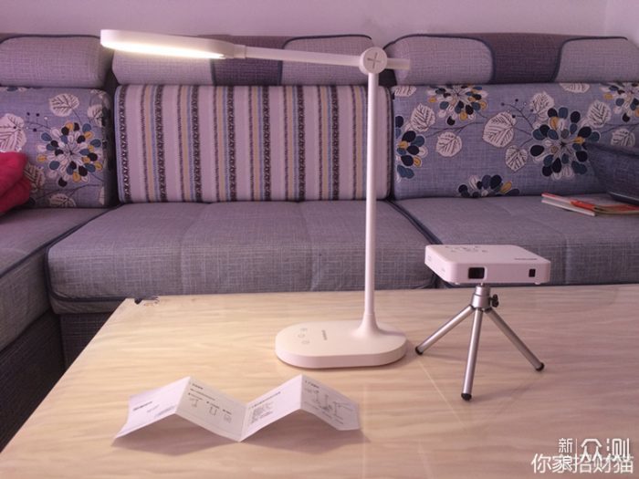 来来来,调整一下角度,咱们感受一下!晚上用便携式投影仪看恐怖电影的时候,关灯后屋子黑洞洞的,胆子小的朋友可以把创维悦目LED台灯放在投影仪后面。