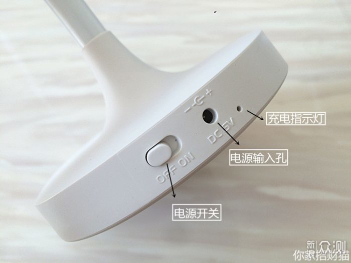 创维悦目LED灯底部一侧有咱们的电源总开关、电源输入孔、充电指示灯三个按钮,整体操作起来非常简单!