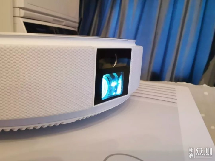 因为这款投影的定位就是便携的聚会神器和卧室投影的选择,所以一般来说我们都不会外接音箱来使用。 这样机器本身的音箱就比较重要了,G7S拥有2个36mm全频强磁扬声器单元,采用对称式环绕设计,同时有净容积达到217.5cm3的超大音箱腔体,使声音更加饱满立体。 3、高通透率玻璃镜头