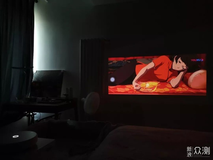 最后给你们看看我是如何把机器带过来的,直接扔到小米的背包里拎起来就可以走了,绝对是聚会神器啊,完全可以做到随包携带。(推荐厂家出个便携保护罩) 三、投影效果:个人感觉对于这款投影的使用环境主要是用于卧室和聚餐,所以说这次测试投影的观影效果我主要就在这两种环境下测试。因为一般来说用这款投影的人一般不会额外安装幕布,所以我的这次测试环境就是以白墙为背景在不同环境光下进行测试。 白墙拉窗帘: 因为这款投影属于3000不到这个价位,所以亮度700ANSI流明虽然在同价位中不低,但是相比于灯泡机动辄破千的流明还是有差距的。 不过G7S在白天拉窗帘的环境下表现还是出乎我意料的,不论是大鱼海棠的人物表情,还是速度与激情的色彩表现都是完全可以满足日常观影需求的。