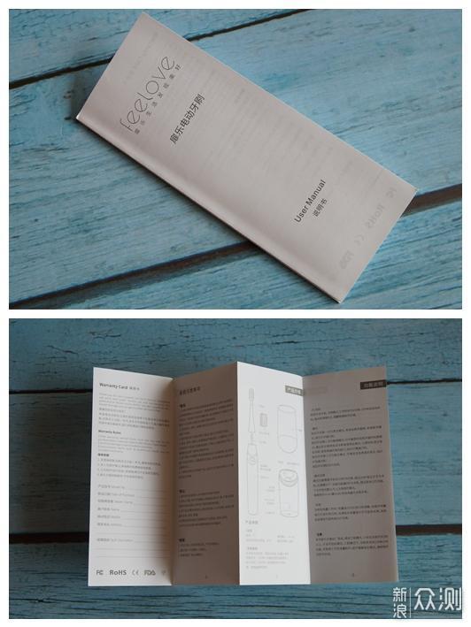 背面有一些产品特点和生产信息,侧面只有简单的Feellove LOGO和Slogan,和正面的简约风格呼应。拆箱后Feellove F1电动牙刷静静的躺在包装盒内,可以看到牙刷本体外有一层保护膜。