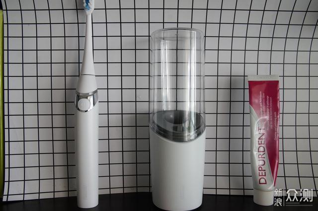 整体颜值还是不错的,多功能收纳盒风格和牙刷比较统一,采用的透明+白色的组合,设计上比较像一个水杯,看上去胖乎乎的。多功能收纳盒除了收纳功能外,还能进行充电、杀菌、烘干等功能,实用性较强。不过体积上并不算小,便携性方面有所折扣。
