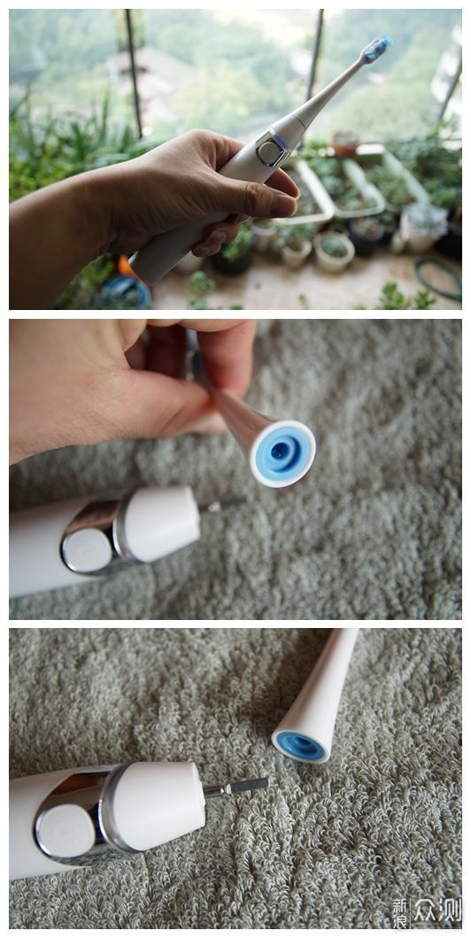 Feellove F1整体握持较为舒适,配合33000转/分钟的高速旋转,可以提供较强的牙齿清洁能力。电机连接轴体采用的金属材质,有效增加了转动的稳定性,相比塑料轴体使用起来更安心。 使用体验: