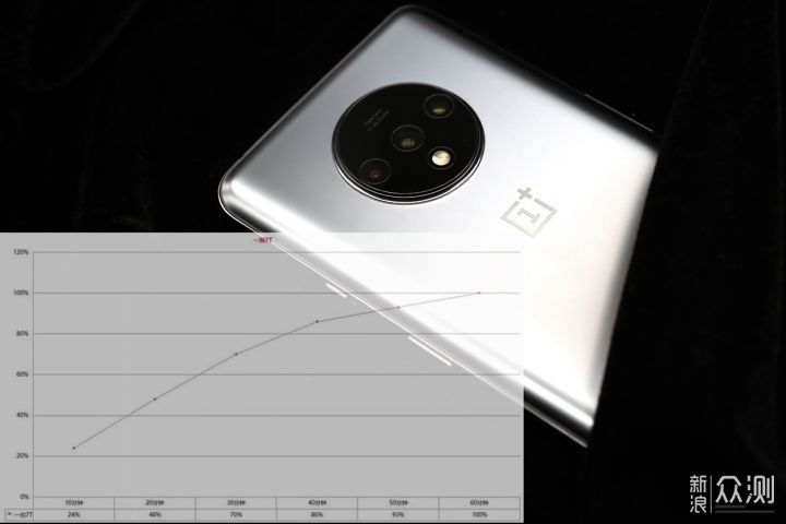 一加7T还将电池容量升级为3800mAh,虽然在当下的旗舰手机之中并没有太大的优势,但在开启90Hz屏幕刷新率时的表现还是不错的:经过1小时1080P视频掉电6%,30分钟最高画质+极限帧率《和平精英》掉电10%,30分钟高帧率《王者荣耀》掉电9%。另外,一加7T标配30W Warp闪充技术,采用大电流方案,10分钟充入24%,30分钟可充入70%,从0充满仅需要约59分钟,充电全程保持高功率状态,实际效率还是令人满意的。
