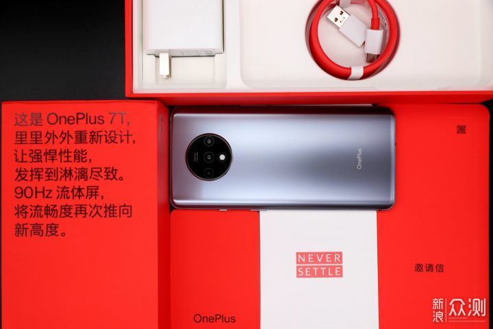 一、外观:更瘦长、更纤薄,背部有变化,但水滴依旧一加7T的改变是“用肉眼也能看得出来”的。首先就是包装盒,虽然依然是红色,但变得更长了,正面“里里外外重新设计”、“让强悍性能发挥到淋漓尽致”、“90Hz流体屏”让人对一加7T的表现充满了期待。侧面一加的标志和OnePlus 7T的字样,也让包装更显品味。