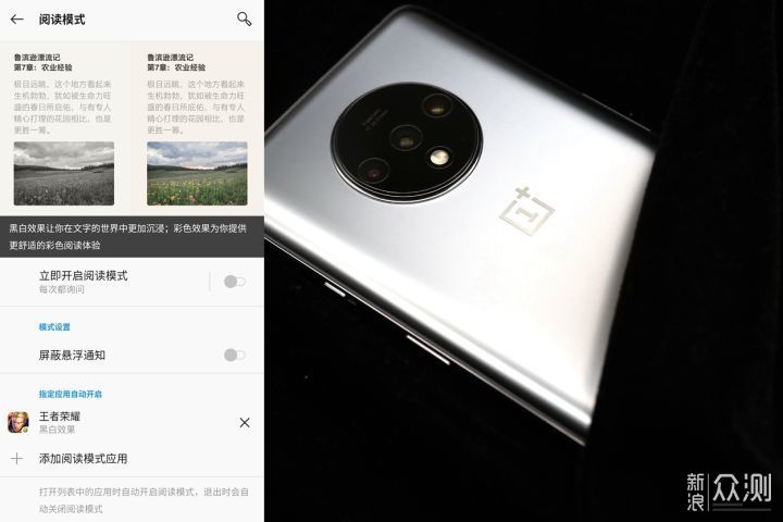 此外,一加7T在阅读模式中新增了“彩色效果”,就是文字变为黑白显示,但图片依然保持彩色,有点像加了一层滤镜,还是比较新奇的。