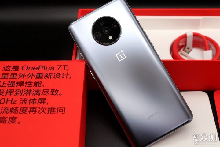 如果说屏幕让你看不出来有什么变化,那么一加7T在背部的变化可以说是相当的明显了。首先就是“奥利奥”圆形设计的后置三镜头模组,三颗镜头呈横向排列,打造出极为和谐的视觉感受。其次就是加入了冰川银配色,通过哑光材质处理,不仅更显高端,而且触感顺滑、手感相当棒,不易沾染指纹。对于冰川银这个配色我个人是超级喜欢的,第一眼就被种草了,拔不出来的那种。