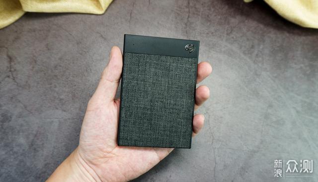 如果按材质来划分的话,希捷Ultra Touch移动硬盘是采用两段式设计。上半段依旧是塑料,而下半却是编织布艺表面。不过布艺表面并不是全覆盖式,只是正面的延伸,两侧边与背面依旧为塑料材质。