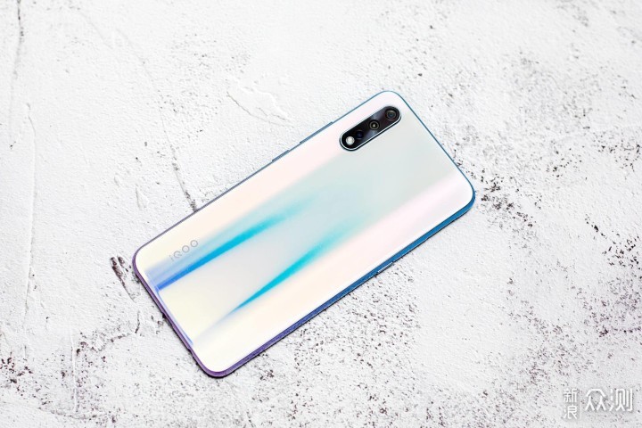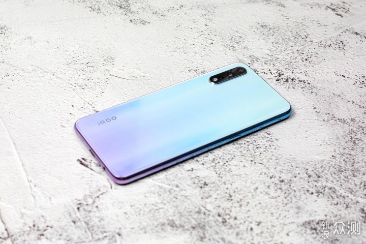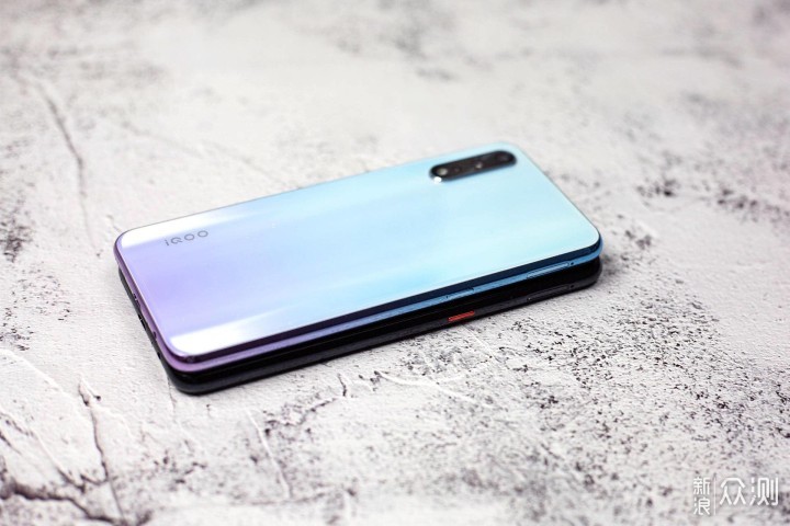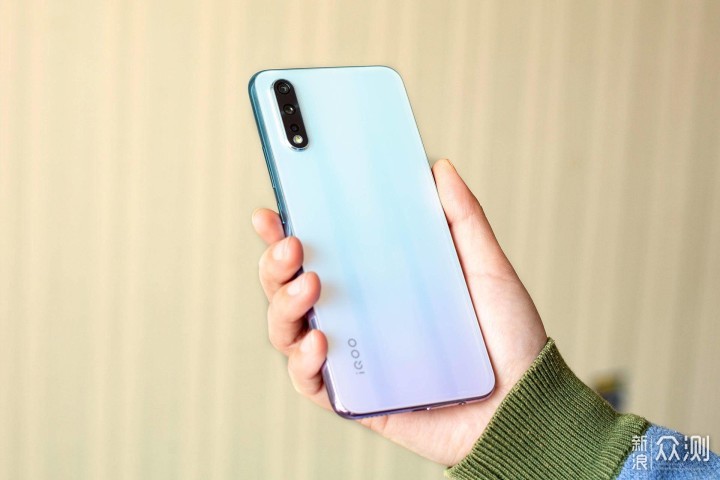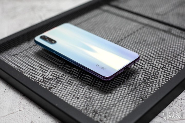 iQOO Neo 855版的机身弧度并不是很大,所以手感并没有想象中的圆润,略微有点生硬。不得不说,冰岛极光的配色看上去很舒服,比较适合女生用。