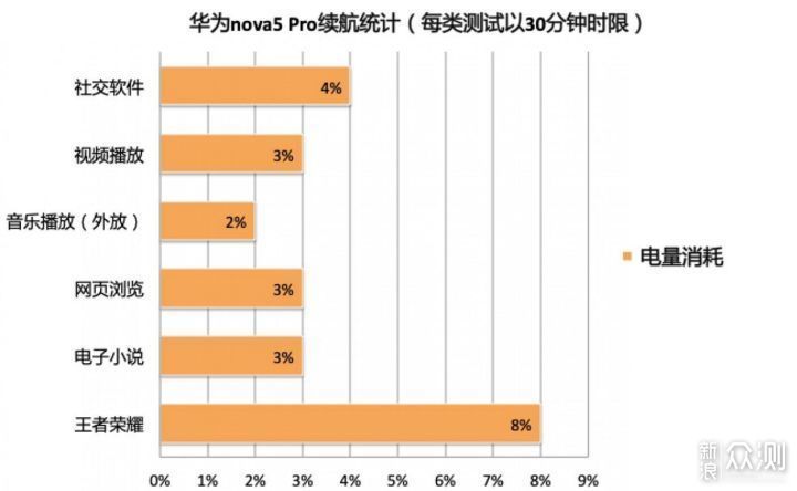 四、3500mAh电池+40W超级快充虽然华为nova5 Pro的厚度仅有7.33mm,但却塞入了3500mAh电池,从数字来看并不大,但得益于华为智电技术的加持,在满电状态下,经过游戏、视频、音乐等应用连续使用3小时的重度测试下,华为nova5 Pro耗电量为23%,表现还是比较出色的。