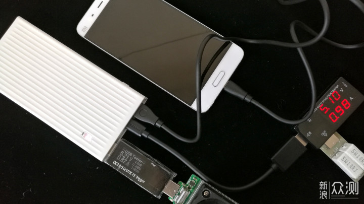 只不过三端口同时输出的话,充电效果会略有降低,不过比较好的一点就是充电宝自带线补功能,多端口同时使用还可以稳定在5v以上电压高速充电,暂时不支持对外输出的时候自充电,否则会自动断开输出而选择自充电。