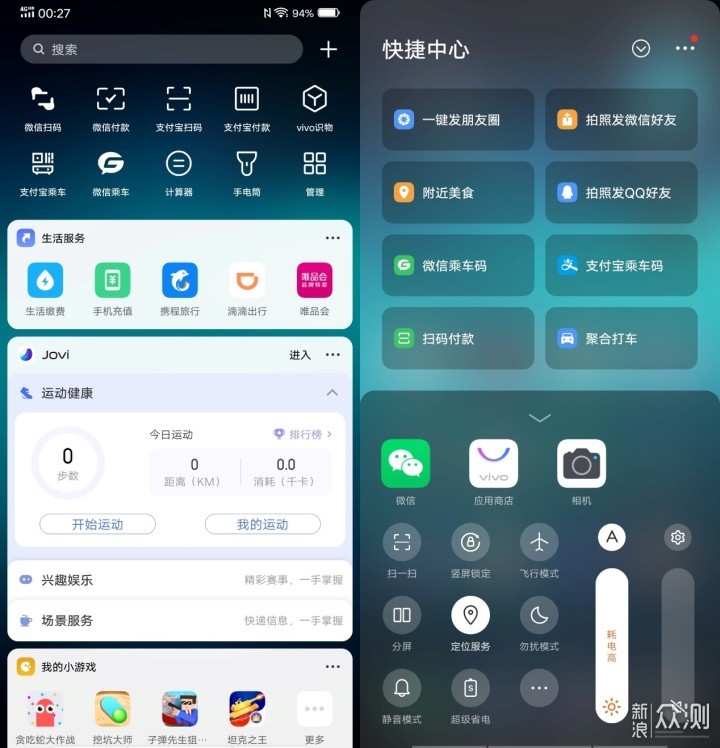 无论是界面切换还是应用启动上均较为流畅,同时再逻辑交互上做的比较贴心,无需太大的学习成本即可快速上手。作为iPhone用户,感觉Funtouch9跟iOS的体验上没有太大的差异,比如长按App进入删除状态,通过上划方式调用出控制中心,通过右划方式即可快速调用一些常用的功能,集成的付款码,乘车码,一键发朋友圈,拍照发QQ好友等等,都方便了用户快捷操作。