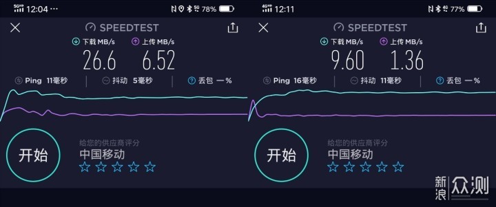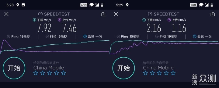 这里搭配对比的是360 4G上网卡,同样是同一张SIM分别安装在手机和360 4G上网卡中,搭配1加7 Pro和Speedtest进行对比,虽然实际测试的速度相比于上面有明显下降,但是vivo NEX 3在5G网络下的热点性能表现仍旧是远优于360 4G上网卡,这也是5G手机可以替代4G上网卡来作为热点使用的直接原因。