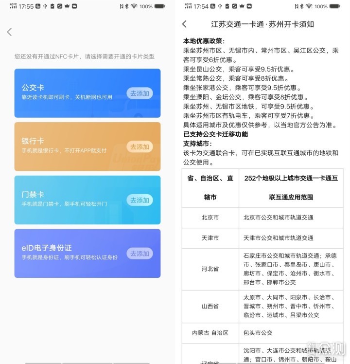 第四个就是内置的NFC已经全面支持支付、公交、门禁卡、eID等场景,对个人而言,替代实体公交卡和门禁卡是手机NFC的最大实用性,方便日常出行。目前可以开通的公交卡有两种,一种是城市一卡通,目前是武汉、上海、西安等七个城市;另一种就是交通联合卡,目前包含了京津冀互联互通卡、岭南、哈尔滨等10种适用于252个地级以上城市,除了标明免费开卡的京津冀互联互通卡外,其他都收开卡费,一般是25元,价格上有些偏高。当手机设置好公交卡后,就可以搭配QQ或是其他软件来实现在线充值的功能,免去了去特定充值点或是排队充值的麻烦。