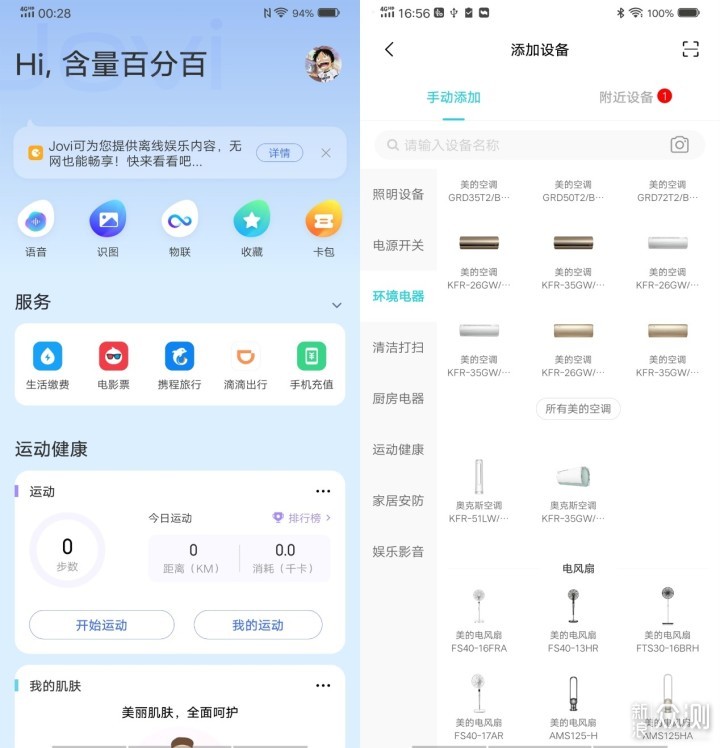 第二个就是内置的Jovi语音助手,通过它除了可以进行语音交互、快速调用程序、进行一些参数设置外,还可以进行与智能硬件的联动设置,也就是左图中的物联选项,可以连接绑定投影仪、洗衣机、冰箱、空调等智能设备,之后就可以通过语音进行控制以及进行联动场景的设置。Jovi的语音交互和智能联动功能,在体验上类似于当前的智能语音音箱,目前也有了一批可以联动的智能设备,不过种类和数量上仍有很大的提升空间,如果抛去音质音量不谈的话,可以作为智慧家庭入口而替代智能语音音箱。