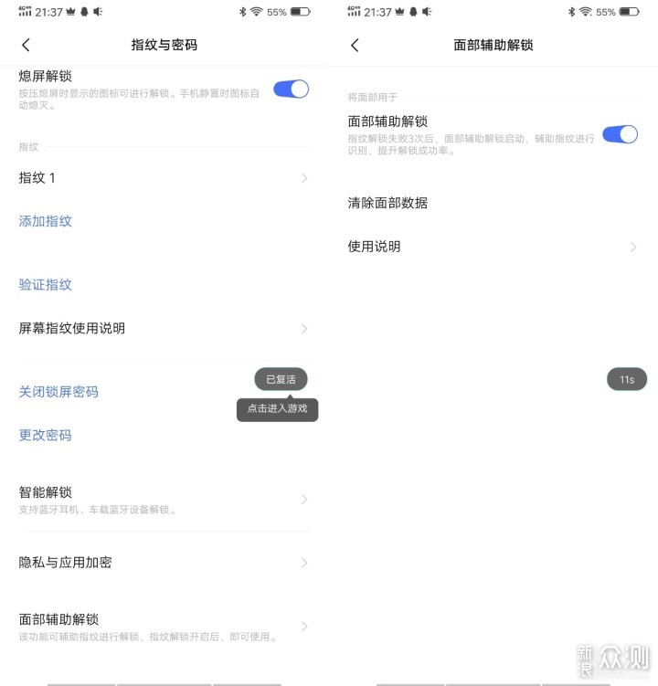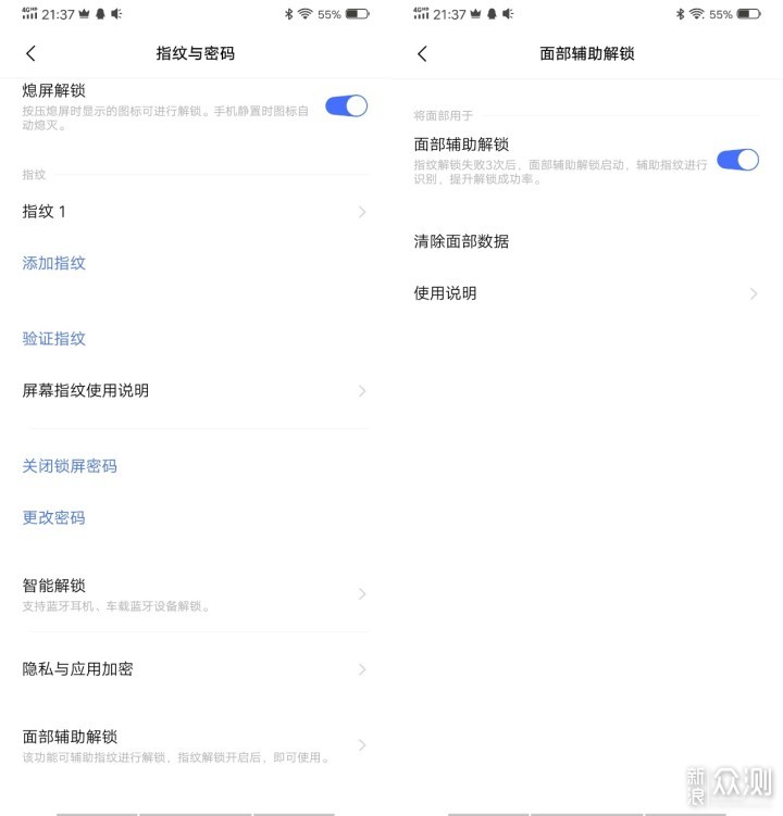 对于面部解锁这个功能,比较有意思的是vivo NEX 3 5G中将其设计为了辅助解锁,并不能直接设置为解锁的第一选项,面部解锁应用的场景就是在三次指纹解锁失败后,系统则会自动启用面部解锁。从作为实际用户的角度来讲,面部解锁不能直接设置为解锁的第一选项的设计是合理的,首先是避免了频繁调用升降式摄像头的麻烦,一定程度上延长了摄像头的使用寿命,也降低了进灰的风险;其次屏下指纹的解锁方式并不比面部解锁反应慢,易用性和便捷性也更高,同时识别率上也比较出色。