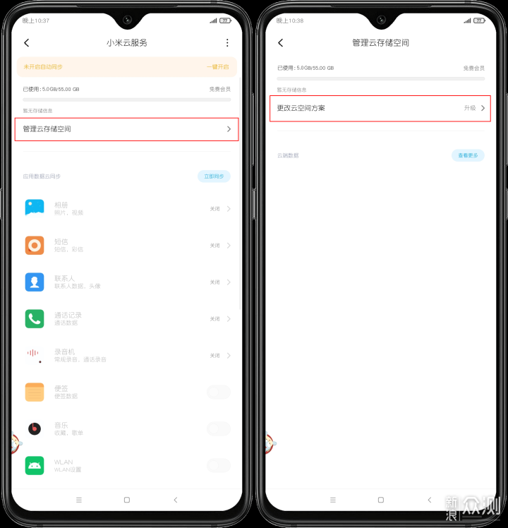 2)接着点击【管理云存储空间】后——再点击【更改云空间方案】即可,如下图所示: