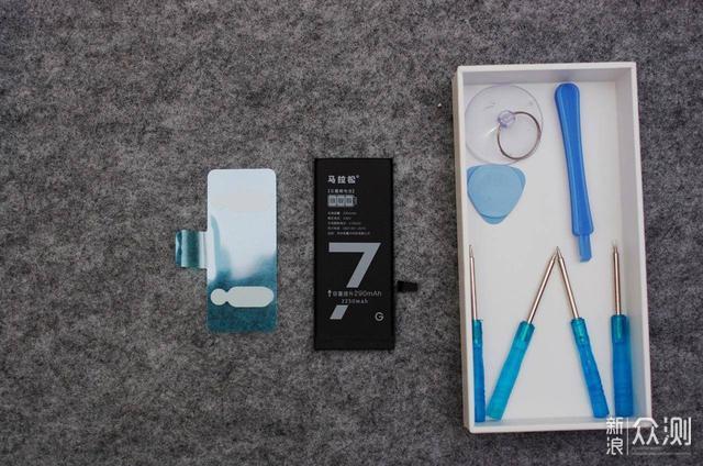 老婆退役下来的iPhone7,我一直拿来当备机用。最近无端屏幕出现了一条竖黑线,晚上查了一下说有可能是屏幕排线接触不良引起的。需要拆机重新插一下排线。心想着反正要拆机,手机我升级了iOS13.1.3后耗电好像上去了,充一次都用不了一个白天,干脆连电池也一起换了吧。 阿里巴巴上的无标电池便宜到我都不敢买,几十块钱就行。想想不要因小失大,毕竟锂电池是个危险的东西。所以还是去京东挑了一个。被手机电量不够搞怕了,就挑了一个宣传上“高容电量提升15%”的马拉松电池,虽然价格相对有些高,但容量也上去了,还是正规品牌,比较放心: 很快京东小哥就送货来了,