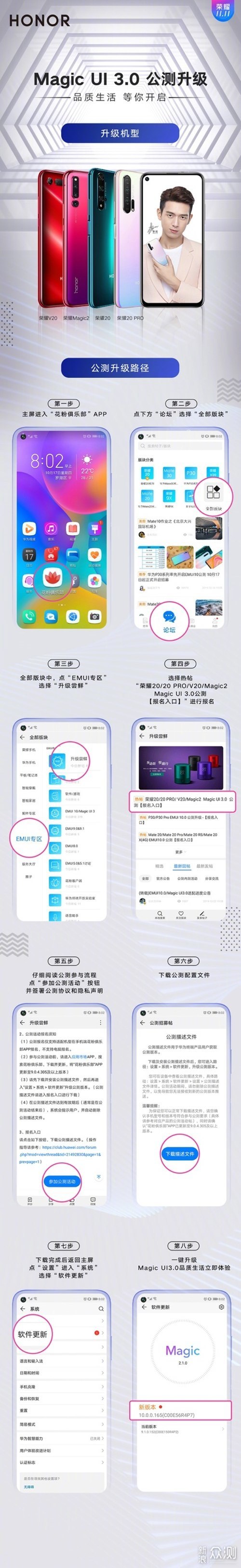 公测升级路径,八步简单操作即刻开启品质生活 自荣耀方传出Magic UI 3.0的升级公测计划后,便一直备受广大用户的期待。在此次升级计划中,Magic UI 3.0在产品消费、智慧生活等方面都体现出了强大的技术性突破。不论是系统流畅度还是视觉呈现,都将为相关用户带来更为优异的使用体验。现在,只需8个升级步骤,即可轻松畅享新系统下的高品质生活。具体步骤如下所示: