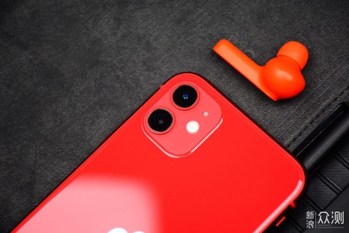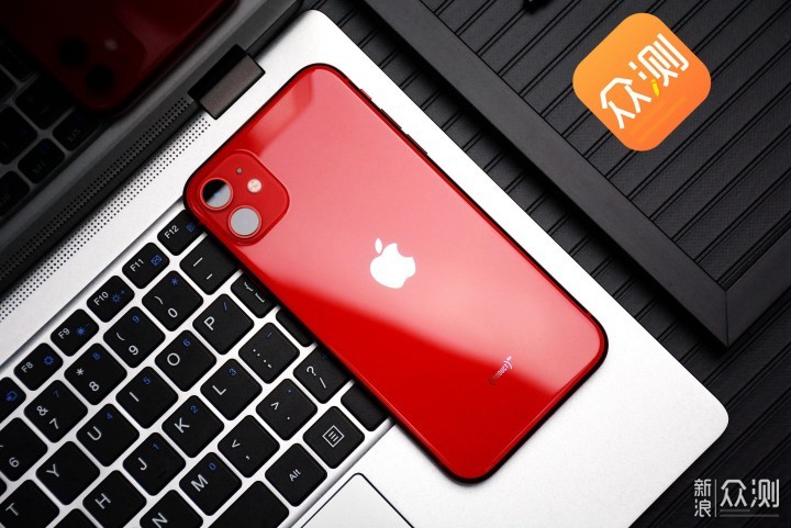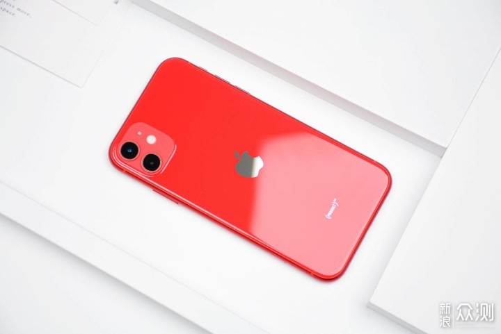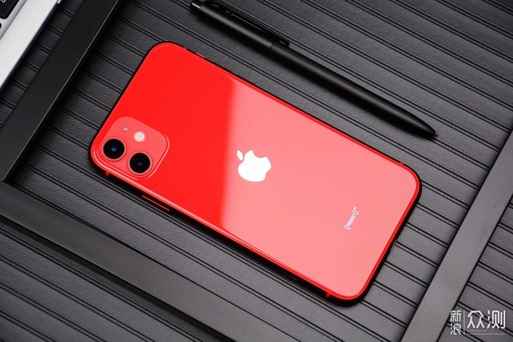 iPhone 11的红色,似一种深红色,略暗(正面看,侧面看颜色略浅一些)。缺了一块的苹果Logo,设计在了背面的正中间。