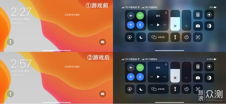 iOS的控制中心,是我最喜欢的,全屏+自由的选择功能模块,很好用。 锁屏界面和通知界面是完全一致了,两个快捷键,长按会有震动反馈,可以进入到对应的功能。 但是,由于刘海屏,我发现电量是无论如何都无法显示在待机界面了,只能在控制中心看到,不得不说给我一定的困扰,这个问题,后续的充电测试还会详细说。 观点2:对3D Touch与Haptictouch的看法