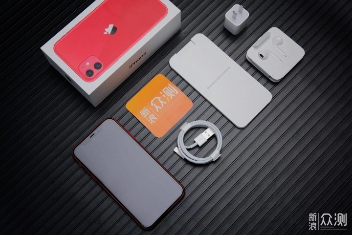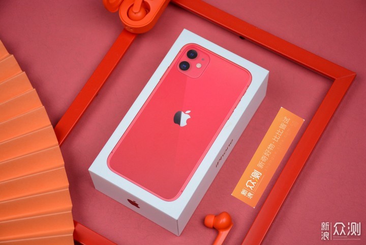 包装盒的风格,是iPhone一直以来的那种印上手机证件照的样式,不过这次印刻在正面的是手机的背面,已经可以看到是红色的iPhone 11了。 实际上,我本来想着做一组红色背景的外观展示,不过红色的分类太多了,可以看到单是图中就有4种红色;为了避免颜色调校不准,还是未使用。