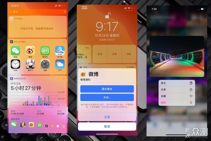 另外,个人比较喜欢,iOS的细节设计。 比如,在屏幕的使用时间里面,最长使用的应用,会随着使用时间的减少,图标也对应的减小,这种细节真的是非常有趣,长期使用会发现,设计师真的给力。 另外,iOS的通知管理真的是好用,锁屏界面,通知管理可以快速的进行设置,包括直接关闭或者是隐藏式推送,贴心! 不过,个人不习惯的是,Haptictouch真的不如3D Touch好用!只能说,Haptictouch保持了3D Touch的一部分功能,但是却没有保留全部的功能。以往,其实3D Touch已经适配了非常多的应用,比如微信界面,长按聊天就会出现整个聊天的预览图,非常好用。 而Haptictouch,只能在部分界面体现出来功能了,比如相册里面直接选择,会出现快速的操作选项。只能说,聊胜于无吧,3D Touch已经全系列取消了。 观点3:关于新增的文件管理,终于可以随意下载文件了