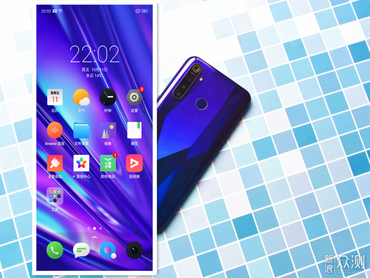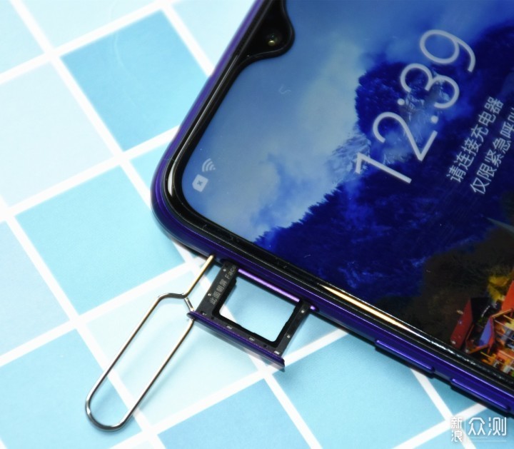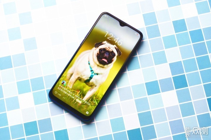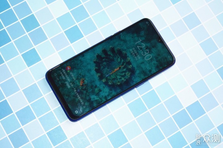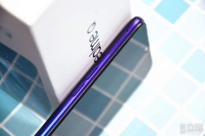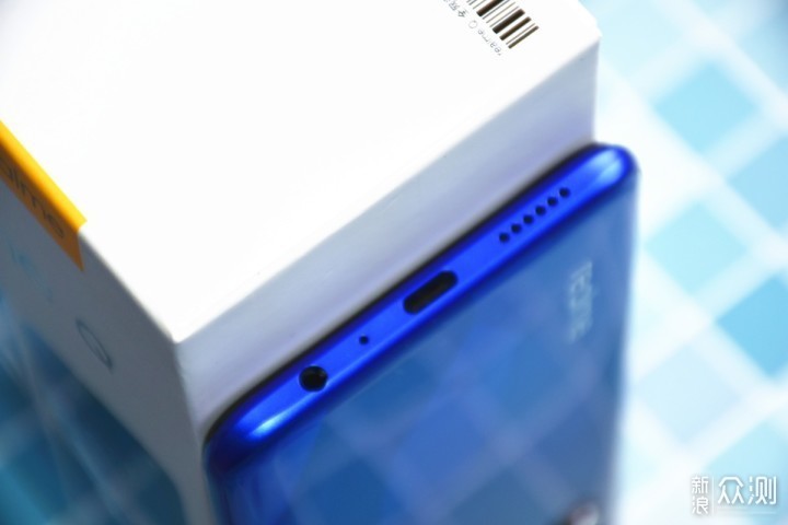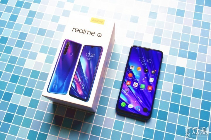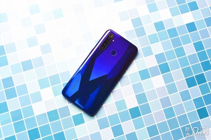 2、设计 realme Q背后使用钻石切割设计的光钻蓝彩色面板,时尚感较强,有点像玻璃镜面摔碎后的景象,拿在手里上手感较舒适,整体倒角分布较圆润,机体比较方正,重量平衡上做的挺不错,正面搭载一块6.3英寸的水滴屏,屏幕所在的区域使用黑色边框框住,和底下的机身进行对接,在不贴膜时会感受到边缘位置有一个阶梯型的手感。