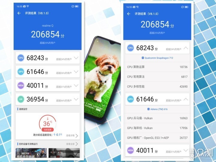 通过实拍可以看出,realme Q滤镜实拍效果之下感觉画面内容比较细腻,实际光线感受也比较不错,整体画面氛围的统一性较强,源于滤镜效果的作用,拍摄出的内容更加具有意境一些。三、性能篇 realme Q搭载骁龙712AIE处理器,存储方面系采UFS2.1+LPDDR4X组合,最高容量组合为8GB+128GB,骁龙712处理器采用了10nm工艺,8核设计,最高主频为2.3GHz,GPU采用了Adreno 616的图像处理器,跑分分数在20w上下,作为一块千元价位的手机,挺不错。