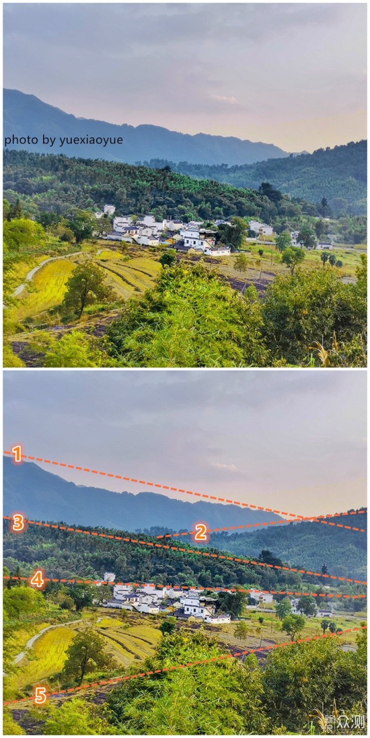 文章开篇时小月留下个“小问题”,在一张隐藏多条“横线”的照片中,问大家会将哪条线作为“地平线”。