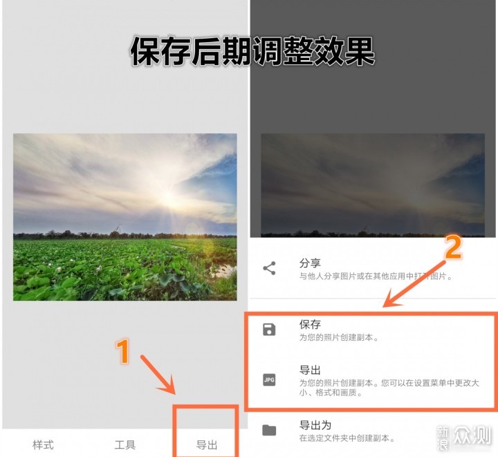 1-点击“导出” 2-选择“导出或保存”均可成功保存至手机相册