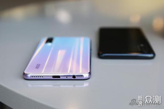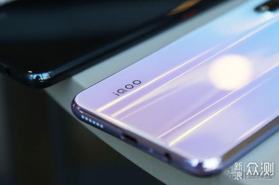 碳纤黑这种颜色也依旧保留 新配色在手机边框四周来了一圈渐变,从蓝到紫色过度柔和,虽然这个边框并非金属,但因为加工精度和漂亮的颜色,它并不难看,而且如果采用抛光金属也没法做到这种着色工艺。 iQOO Neo四周接口简单,双SIM卡槽并不能拓展,所以选内存的时候最好能考虑以后需求;USB-C口充电,好在并没有舍弃3.5耳机口,这点值得点赞。