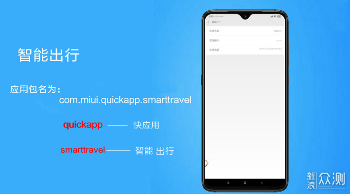 为啥说这个功能是基于快应用,通过分析其包名就可以知道,点开上图“智能出行”应用的信息的右上角“!”图标,就看到如下信息,其中应用包名为“com.miui.quickapp.smarttravel”,而quickapp则是暗示了快应用的简称,smarttravel则是标识这个快应用的功能名字就是智能出行。