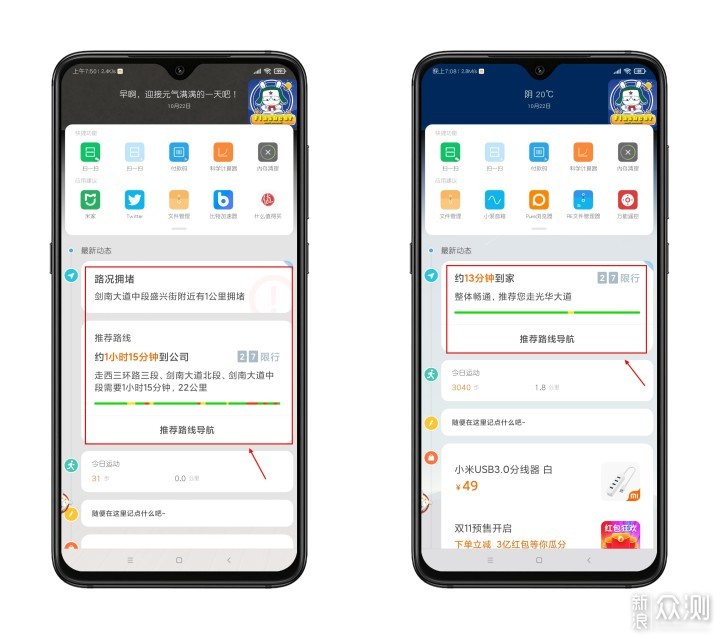 而这个功能的好处在于,方便我们日常早出晚归上下班交通出行,当然还能自动更新路况和线路状态。Flashcer以自己早上和晚上上下班的路线为例,打开负一屏就能自动给您推送路况状态,助力出行。