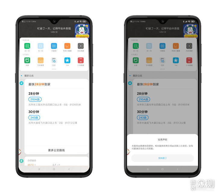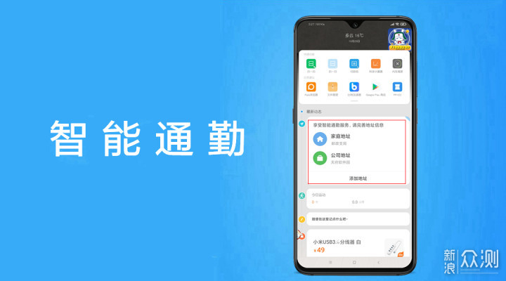 | MIUI 11更新了,目前MIUI 11开发版悄悄地上线了这个功能——“智能通勤”。该功能位于负一屏,首次激活时,会提醒您添加家庭地址和公司地址。