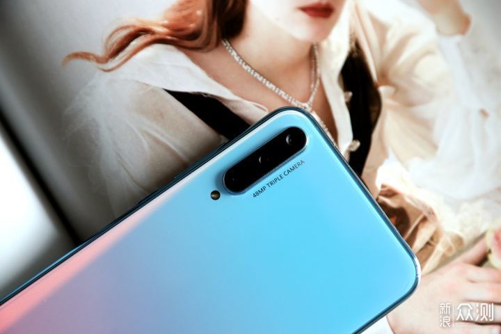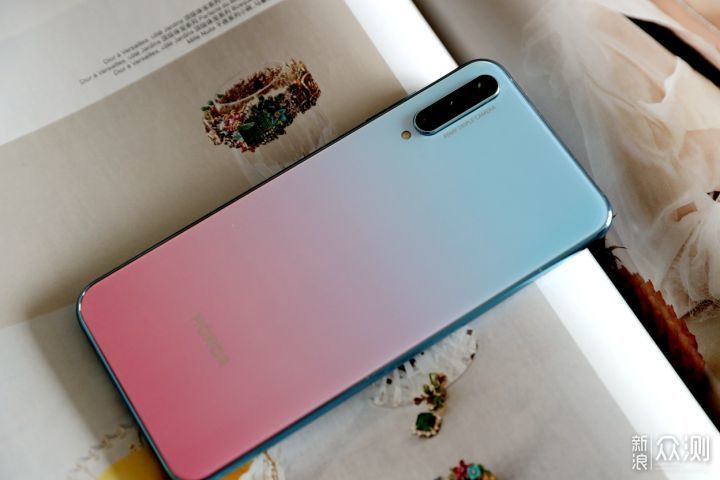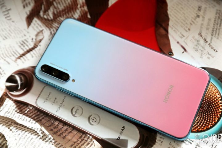 荣耀20青春版有冰岛幻境、蓝水翡翠和幻夜黑三种配色,这次我拿到了女生最爱的冰岛幻境配色,背部采用了粉蓝撞色渐变设计,更完美的诠释了“无渐变、不青春”的青春理念,同时172g的机身重量和7.7mm的机身厚度,也让荣耀20青春版成为了同价位中最轻薄的手机。