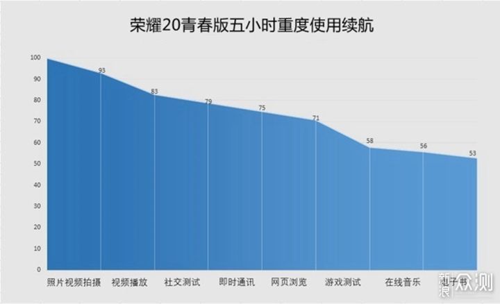 为了提升手机续航,荣耀20青春版搭载了4000mAh的大容量电池,通过五小时重度测试(即30分钟拍照测试、60分钟视频播放测试、30分钟社交测试、30分钟即时通讯、30分钟网页浏览、30分钟游戏测试、30分钟在线音乐、30分钟电子书)之后,荣耀20青春版电量还剩余53%,续航能力值得肯定。而且荣耀20青春版还支持20W快速充电,30分钟就可充电到50%以上。