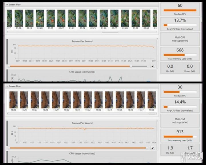 我们通过gamebench来测试荣耀20青春版在热门游戏《王者荣耀》和《和平精英》中的帧率情况,将两款游戏画质调节到可支持的最高画质,通过测试可以看到,荣耀20青春版在运行《王者荣耀》时可以毫无压力的达到60帧满帧,而且帧率曲线非常平稳,全程几乎没有波动;而《和平精英》的平均帧率为30帧每秒,整体帧率表现稳定。而实际游戏体验也和测试的情况一致,能够非常顺畅毫无压力的运行《王者荣耀》和《和平精英》这两款热门手游。