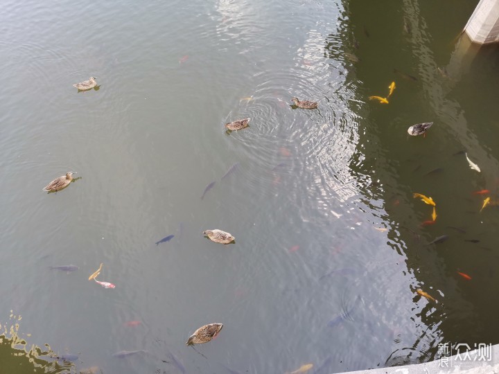 动态抓拍,前者是白天俯拍湖里的鱼,后者是夜晚室内鱼缸内的鱼。两张照片的细节还原度非常好,鸭子的羽毛纹理、水的波纹、制氧机的气泡杂质、金鱼的细节特征都还原的不错。