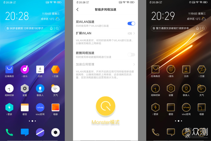 iQOO Neo 855版对针对游戏的优化,快捷控制中心第一项就是“Monster模式”,开启后整个屏幕主题都变了,高通骁龙855CPU火力全开,一切为了游戏畅快运行。