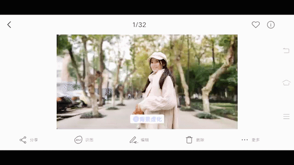 拍完照片后,在相册里手指滑动调节模拟f16到f0.95各级光圈景深效果。