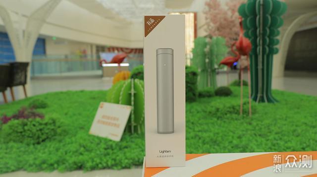 包装盒的左上角印着小米有品的LOGO,标志着它的出处。产品图案居于正中,看上去像是一个银白色的圆柱体。下面是"Lighten"的标志。