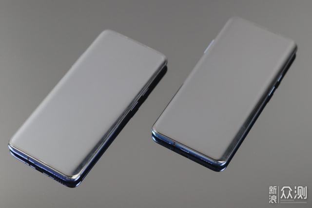两者整机设计十分相近,最大的差别在背面。首先是颜色上,一加7 Pro的颜色官方称其为"星雾蓝",一加7T Pro则叫"海月蓝",实际观感后者相较于前者颜色更浅一些,从背面顶部往下颜色逐渐浅化,还真有点海天蓝月的感觉。 左一加7 Pro,右一加7T Pro)